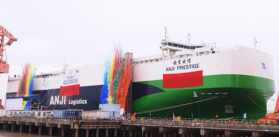 On December 23, the first 7,800 CEU LNG dual-fuel ocean-going PCTC in the series built by Jiangnan Shipyard, a subsidiary of China State Shipbuilding Corporation (CSSC), for Anji Logistics Co., Ltd. was officially named “Anji Prestige” and signed for delivery on the same day, marking the successful completion of Jiangnan Shipyard’s 2024 civilian ship delivery mission.